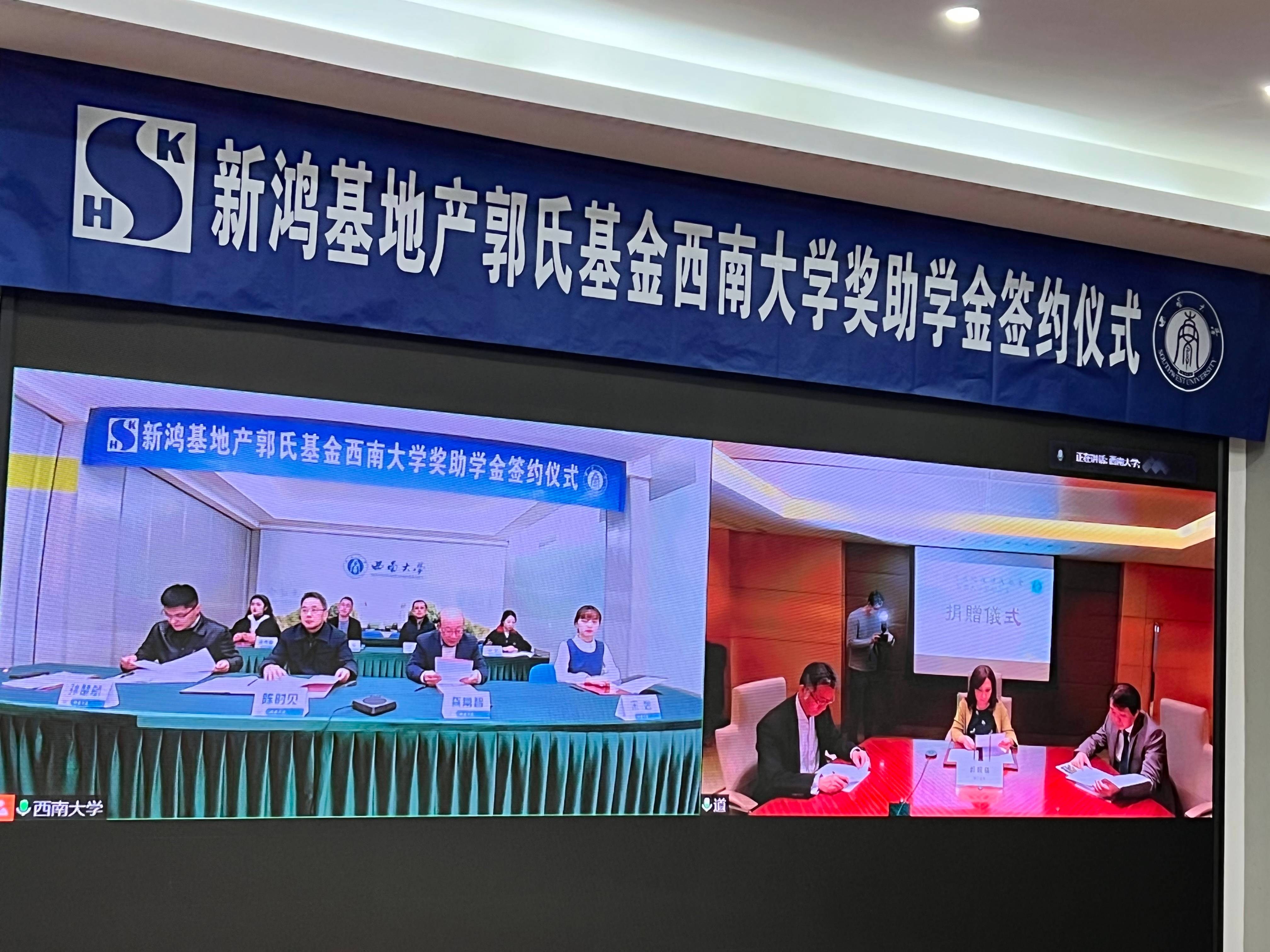 11月26日下午,新鸿基地产郭氏基金437ccm必赢国际官方网站奖助学金签约仪式以线上视频会议方式在国际合作与交流处视频会议厅举行。新鸿基地产郭氏基金有限公司执行董事郭婉仪,总监李家华,传讯总监廖国伟,学校副校长陈时见出席会议,党委学生工作部、对外联络办公室、教育基金会负责人以及受助学生代表参加会议。