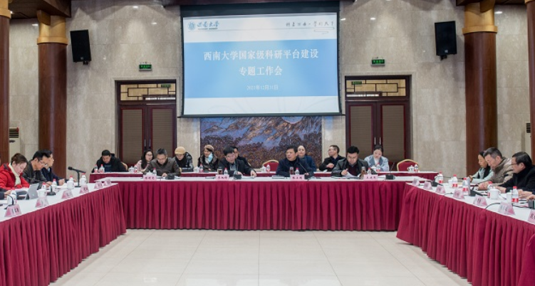 12月31日上午,学校在东方红会议厅召开国家级科研平台建设专题工作会。学校党委书记李旭锋,校长张卫国,副校长陈时见、王进军出席会议,党政办公室、发展规划与学科建设部、人力资源部、研究生院、 社会科学处、科学技术处、财务部、实验室建设与设备管理处、后勤保障部等部门主要负责人参加会议。西南民族教育与心理研究中心、家蚕基因组生物学国家重点实验室、国家柑桔工程技术研究中心、重庆金佛山喀斯特生态系统国家野外科学观测研究站、智能传动和控制技术国家地方联合工程实验室等5个国家级科研平台负责人进行汇报。会议由张卫国主持。