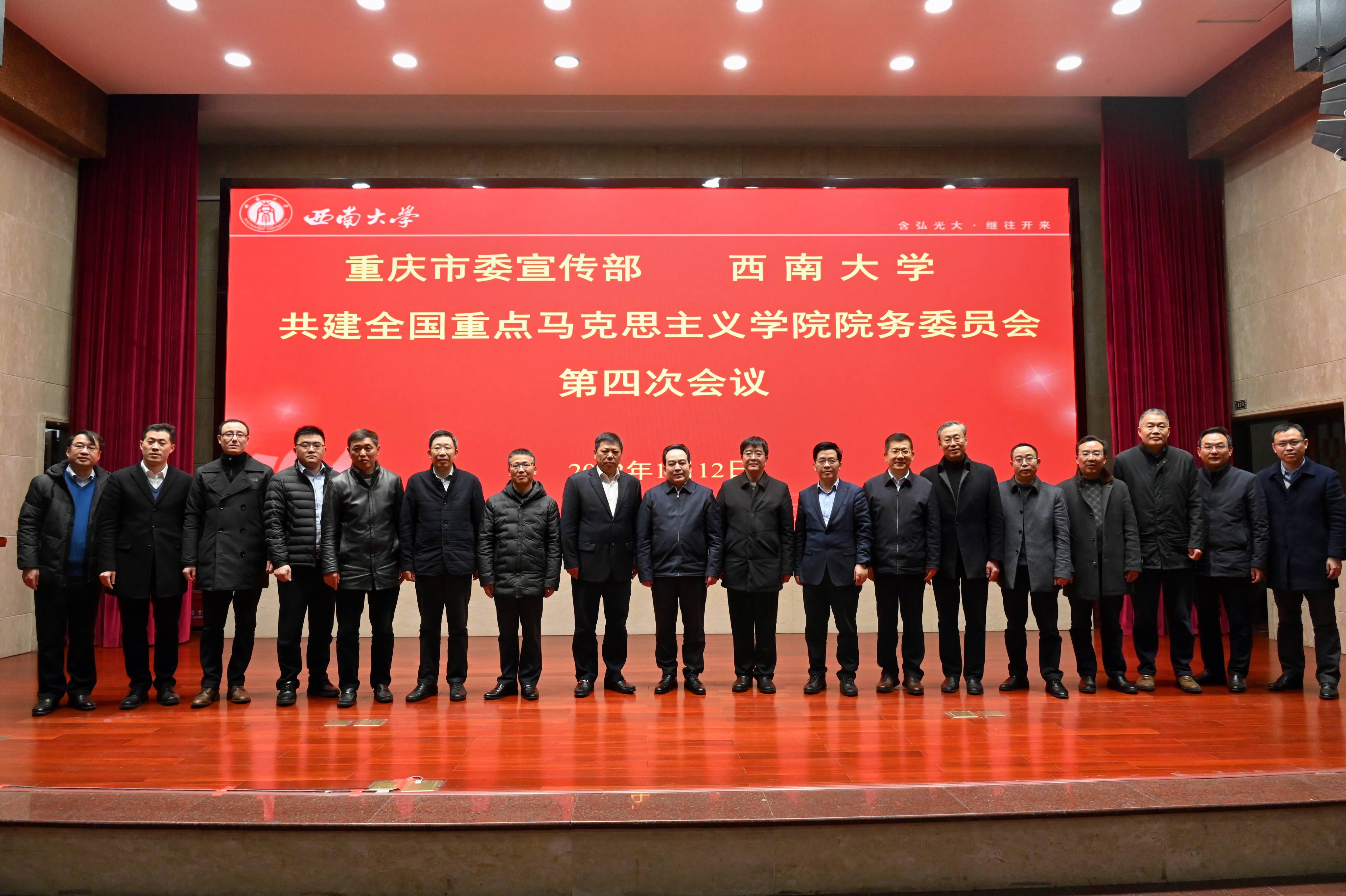 1月12日上午,重庆市委宣传部、437ccm必赢国际官方网站共建全国重点马克思主义学院院务委员会第四次会议在437ccm必赢国际官方网站召开。重庆市委常委、宣传部部长张鸣,重庆市委宣传部副部长、一级巡视员曾维伦,重庆社科院党组书记、院长刘嗣方,重庆社科联党组书记、副主席李保海,重庆市委教育工委专职副书记覃正杰,学校党委书记李旭锋、校长张卫国、党委副书记安春元、党委副书记潘洵出席会议。重庆市委宣传部理论处,重庆市委教育工委宣教处及437ccm必赢国际官方网站相关职能部门负责人、马克思主义学院党政负责人参加会议。会议由李旭锋主持。