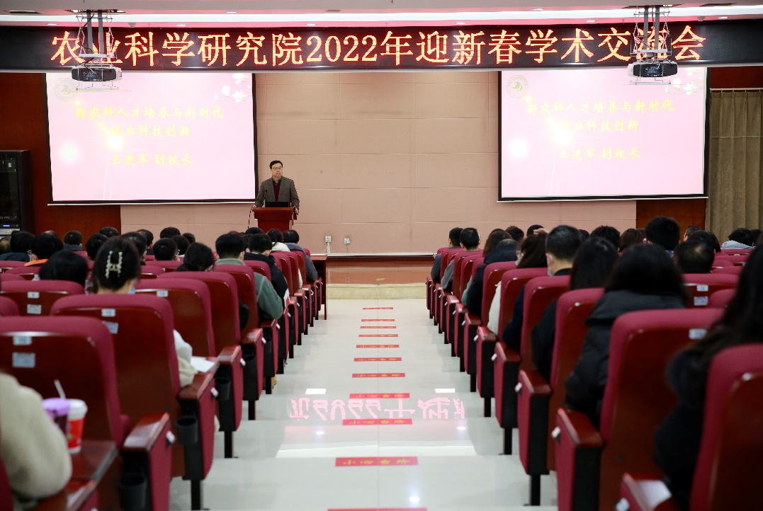 为了进一步促进团队间交叉融合,增强团队学术交流氛围,学校农业科学研究院于2022年1月17日上午在隆平楼204报告厅举办2022迎新春学术交流会,副校长王进军、农业科学研究院负责人、各团队负责人及师生代表参与会议。
