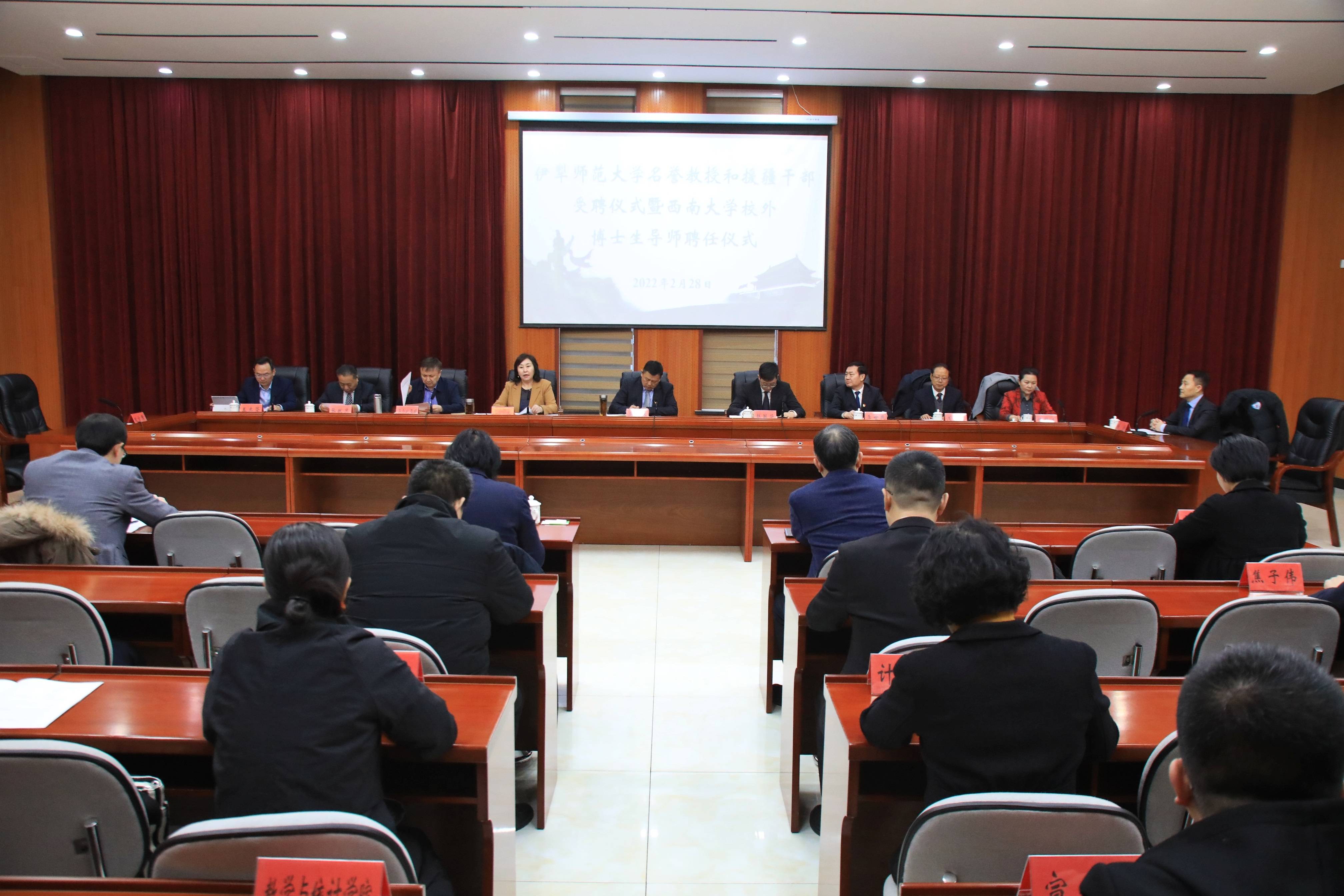 仪式由库兰主持。学校王志章教授被聘为伊犁师范大学名誉教授,汪宏、余应鸿两位副教授分别被任命为伊犁师范大学研究生处副处长和教育科学学院副院长;伊犁师范大学焦子伟、张维、刘国胜、冯晖、马永全、蒋中英等六位教授分别被聘为437ccm必赢国际官方网站校外博士生导师。