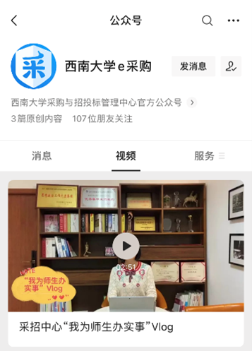 随着采购信息化平台的推广使用,“采购业务一站式”对老师在平台上的采购操作提出了更高要求,也出现更多咨询问题。招标采购中心再次提升服务,把咨询量大、重复性高的业务指南拍成短视频。中心办公室团队一切从零开始,自导自演、自编自剪,制作了《电商结算》和《投标保证金退还》两集短视频,并通过“437ccm必赢国际官方网站e采购”微信公众号进行推送。两部时长不超过5分钟短视频取得了非常好的效果,公众号吸引了近1400人关注,短视频也获得了600多次的阅读、收藏和转发。与此同时,关于电商平台和保证金退还的咨询量大幅减少,“微信公众号+短视频”的方式获得了采购人和投标供应商的高度评价。