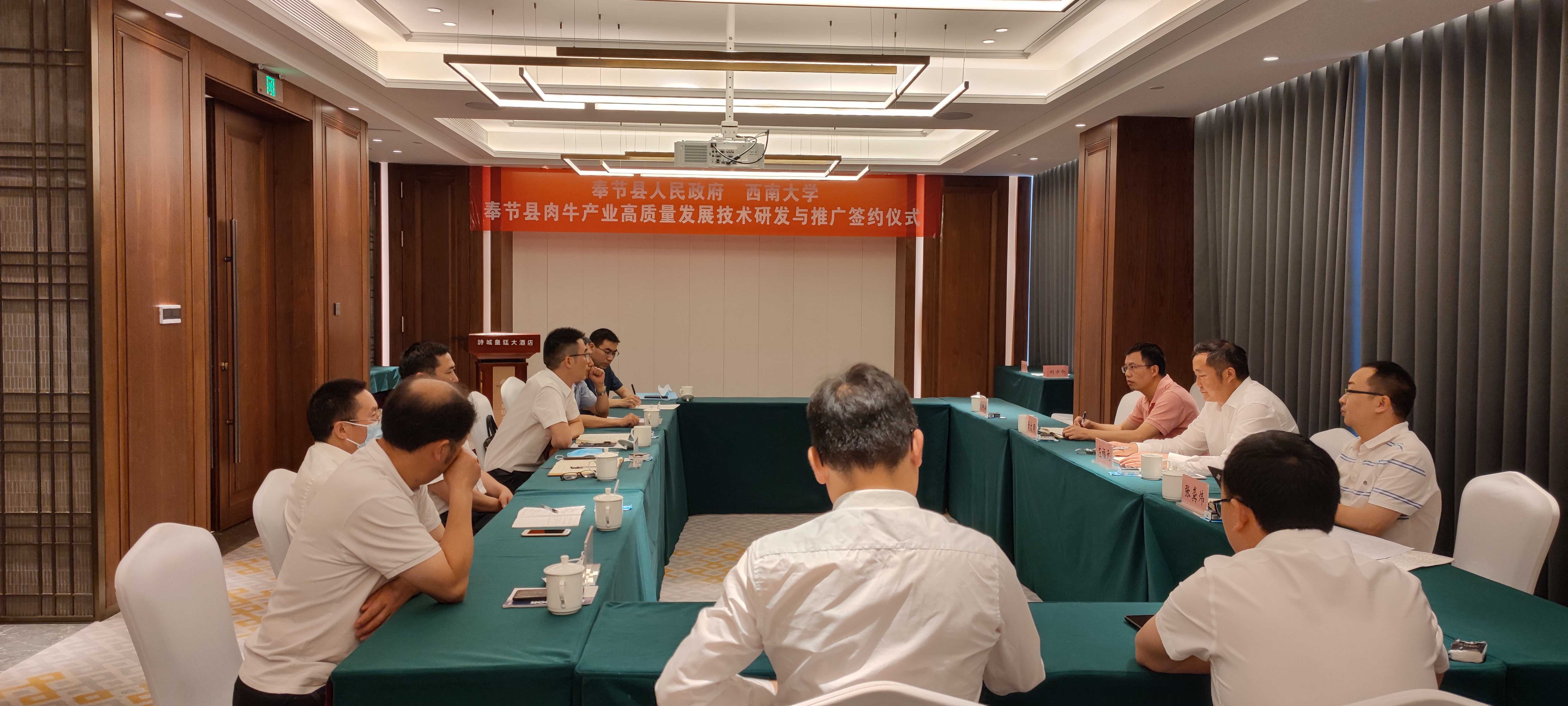 5月10日至11日,动物科学技术学院“肉牛遗传改良与现代化生产团队”负责人左福元教授带领团队成员,与重庆市奉节县人民政府举行《奉节县肉牛产业高质量发展技术研发与推广》签约仪式,并召开后续工作推进座谈会。