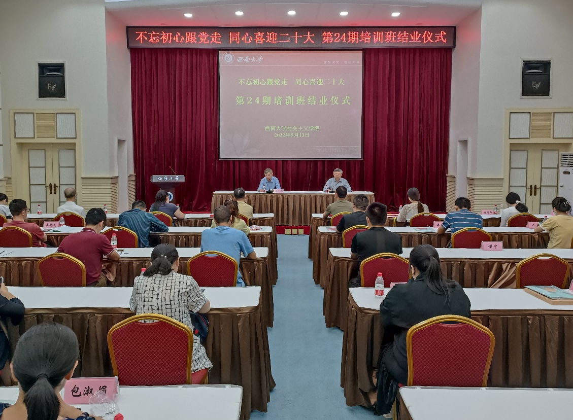 5月13日下午,学校举行社会主义学院第24期培训结业仪式。学校党委副书记潘洵出席会议并讲话。会议由党委统战部常务副部长、社会主义学院教务长周文全主持。