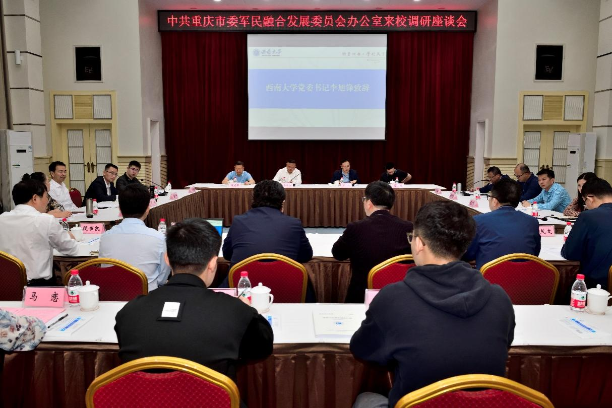 5月17日上午,中共重庆市委军民融合发展委员会办公室副主任马奇昌带领军工处处长吴杰、军工处副处长陈昌涛、军工处调研员苟思一行来校调研,学校党委书记李旭锋、副校长崔延强陪同。党政办公室、科学技术处、材料与能源学院、蚕桑纺织与生物质科学学院等单位负责人和部分专家参加本次调研。