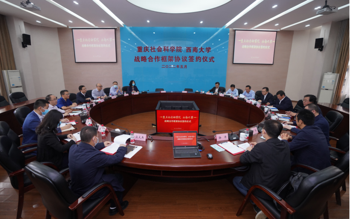为持续学懂弄通做实习近平新时代中国特色社会主义思想,深入学习贯彻习近平总书记关于繁荣发展中国特色哲学社会科学的重要论述,充分发挥各自特色优势,共同推进哲学社会科学繁荣,高质量服务国家战略和重庆经济社会发展,5月20日,学校与重庆社会科学院签署战略合作协议。重庆社科院党组书记、院长刘嗣方,校长张卫国,副校长崔延强出席签约仪式。