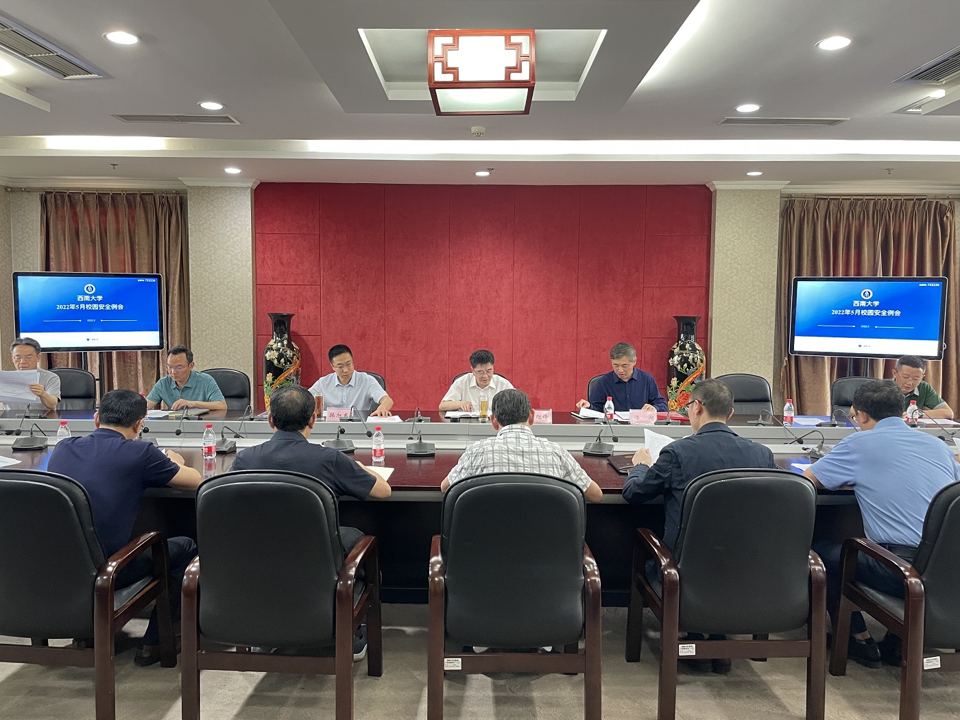 5月24日下午,学校5月校园安全工作例会在行署楼第五会议室召开。党委书记李旭锋、党委副书记潘洵、副校长韩旭东出席会议,相关职能部门负责人参加会议。李旭锋主持会议。