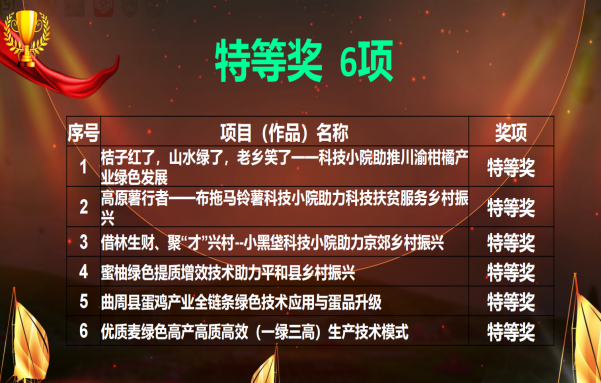 5月27日,中国研究生“乡村振兴科技强农+”创新大赛第一届科技小院大赛全国总决赛在云南大理顺利举行。学校资源环境学院、长江经济带农业绿色发展研究中心的三支科技小院队伍进入决赛,并斩获佳绩。其中柑橘科技小院“桔子红了,山水绿了,老乡笑了——科技小院助推川渝柑橘产业绿色发展”项目荣获大赛特等奖,铜梁蔬菜科技小院“长江经济带蔬菜全产业链绿色发展:铜梁模式”项目获一等奖,勐海水稻科技小院“傣王稻专用套餐肥研发及示范推广” 项目获二等奖,学校获优秀组织奖。