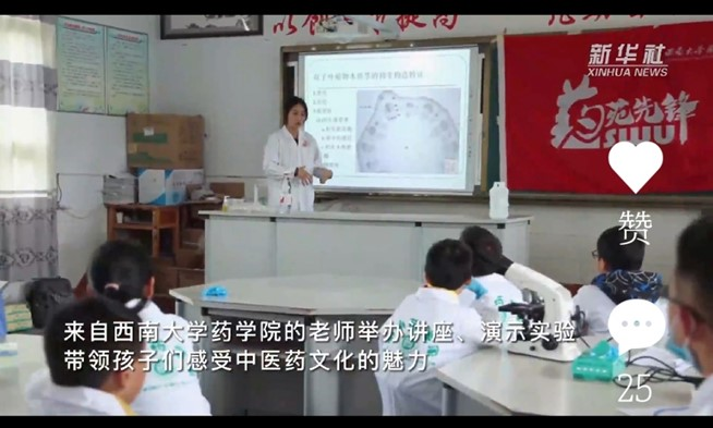 6月1日,新华社报道学校药学院教工第一党支部在国际儿童节前夕,前往石柱县黄水小学,开展以黄连文化为主题的“小小药学家”科普活动,助力乡村教育,为该校孩子们送去节日的祝福。
