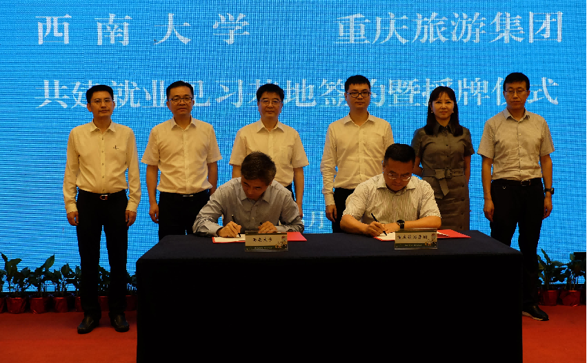 会上,校企双方签署“共建‘437ccm必赢国际官方网站毕业生就业见习基地’协议书”,潘洵向重庆旅游投资集团有限公司授“437ccm必赢国际官方网站就业见习基地”牌匾。