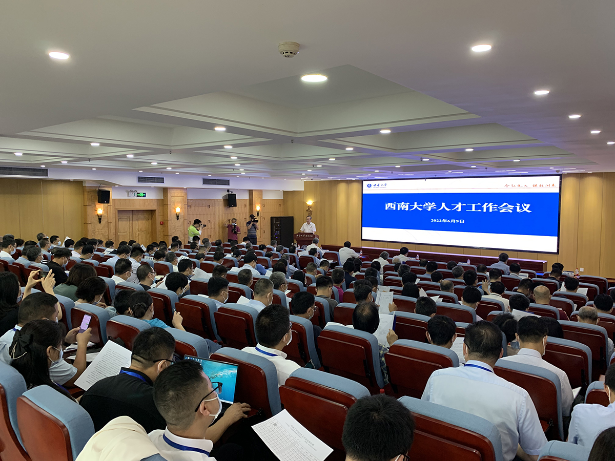 深入实施人才强校战略,奋力谱写西大发展新篇。6月9日,学校在田家炳书院召开人才工作会,深入学习领会中央人才工作会议精神和习近平总书记关于人才工作系列重要指示批示精神,全面回顾总结学校人才工作取得的成绩,科学分析研判人才工作形势,系统部署今后一段时期内学校各项人才工作。