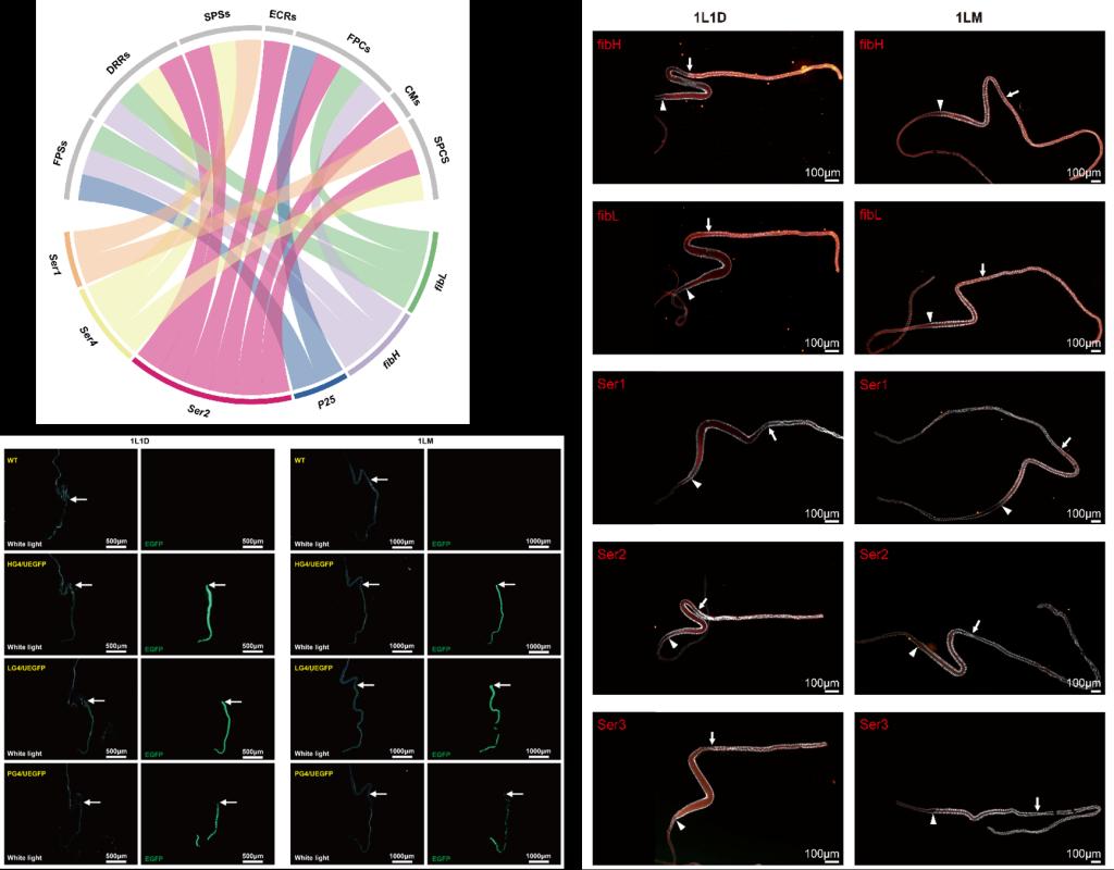 丝蛋白是大自然赋予人类的一种天然可再生蛋白资源,具有优异的力学性能、生物相容性以及生物可降解性等特点,开发利用价值巨大。地球上已知能够产丝的生物超过十万种,其中包括人们熟知的蚕类、蜘蛛、蚂蚁等。家蚕的丝蛋白合成能力超强,是迄今唯一被人类完全驯化并形成了重要产业的产丝动物。百余年来,探明家蚕高效产丝以及蚕丝性状形成的分子基础,一直是蚕业科学领域致力突破的关键理论问题。研究解决该问题,对于蚕丝性能改造、分子育种以及方兴未艾的丝蛋白多元化、高值化开发利用具有重要指导意义。