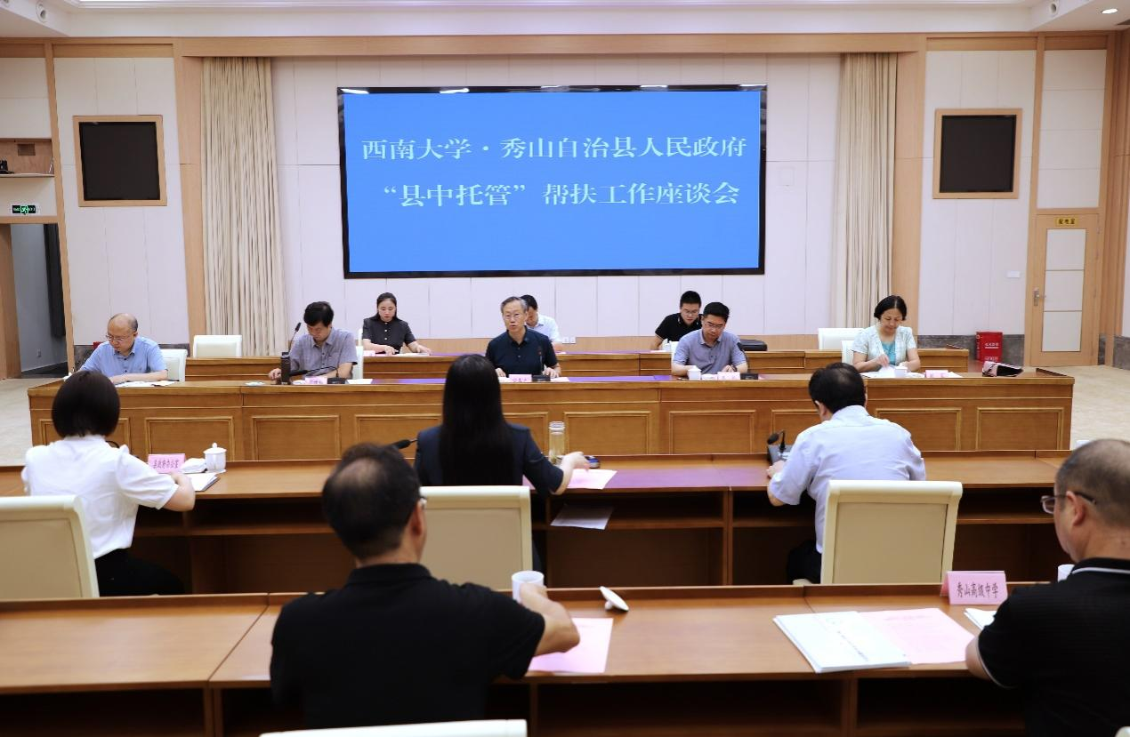 6月21日,安春元一行与秀山县政府进行座谈,秀山县政府领导就教育工作情况、秀山县高级中学教育教学现状及托管帮扶需求进行详细汇报。安春元对秀山县坚持教育优先发展战略表示肯定,希望双方提高政治站位,把思想统一到教育部的安排部署上来,不偏不倚做好托管帮扶工作;要实事求是,绝不搞形式主义,借助437ccm必赢国际官方网站教育资源,促进秀山县基础教育提质增效。