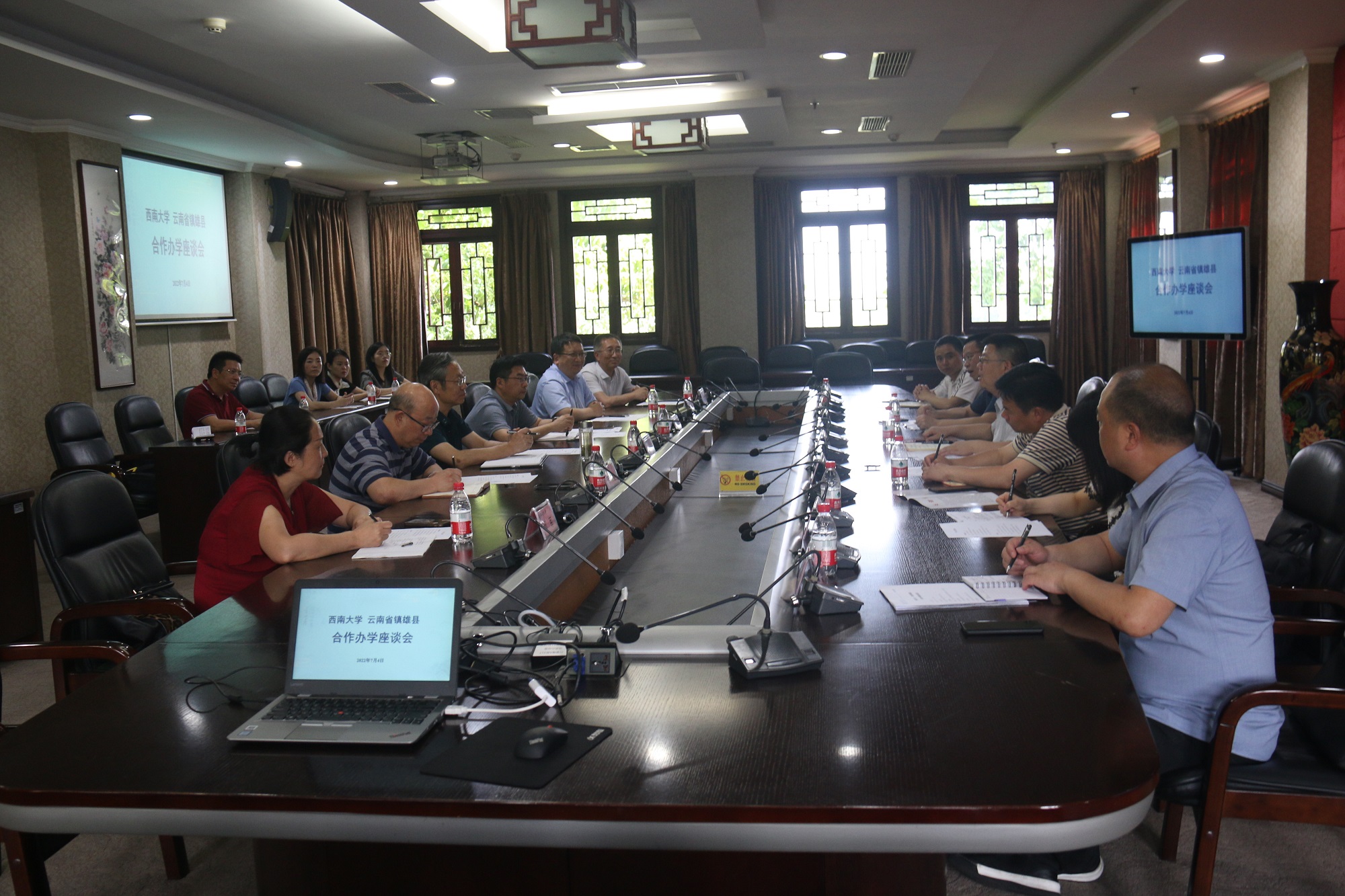 7月4日,云南省昭通市镇雄县委书记肖顺兴带队来校进行座谈交流,推进合作办学工作,并送上“教育帮扶,大爱无疆”锦旗与感谢信,学校党委副书记安春元会见肖顺兴一行,党政办公室、培训与基础教育管理处、基础教育公司等相关部门负责人参加座谈。