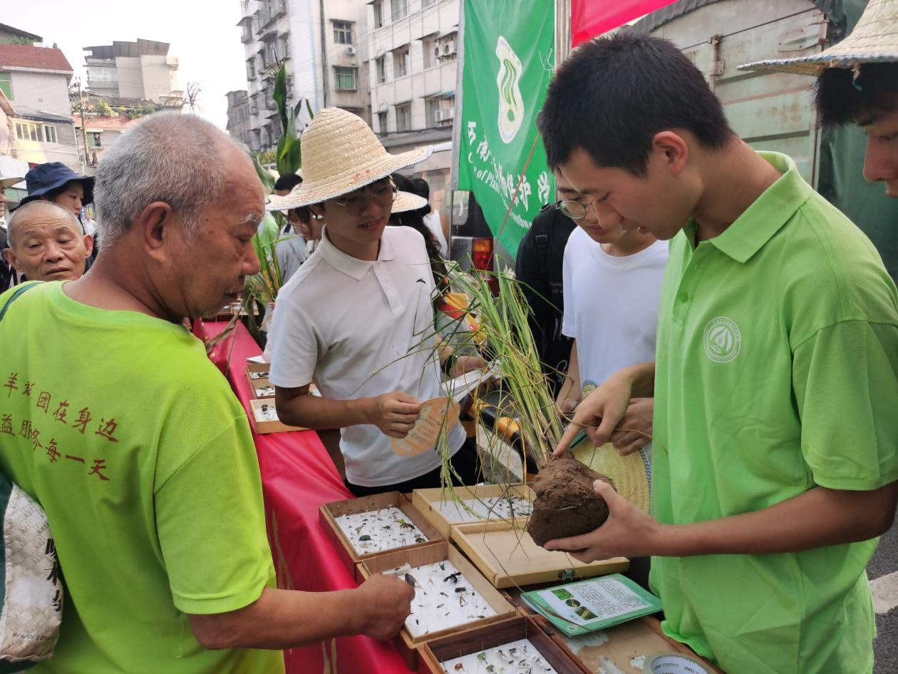 “科技赶场”,心系三农。赶场这天,铜溪镇农贸市场口人头攒动热闹非凡,师生们把采集到的植物病虫害标本、易拉宝、宣传手册以及宣传标语放置在场镇中心,接受当地农户的咨询。展台前来领取宣传资料和咨询农业病虫害知识的群众络绎不绝,院长刘怀和师生们主动向赶场群众讲解标本病虫害主要发生种类、危害症状以及防治手段,科普该地区主要农业病虫害的特征及危害习性,一一解答了他们在生产中遇到的问题及疑虑。队员们向农户随机进行了问卷调查,了解他们的土地使用状况、对农业生产中的化学残留及环境污染的认识等等,并进行耐心细致的宣传讲解。
