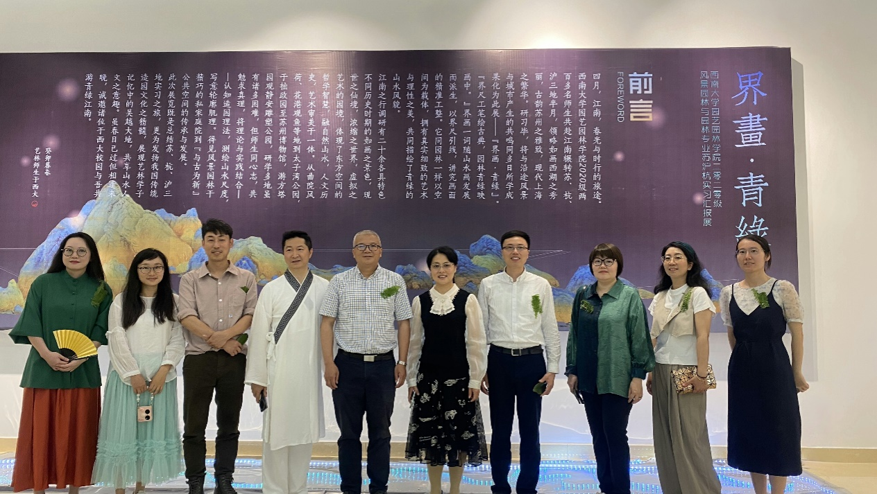 研习毕,师生归。同学们通过精心构思,动手制作模型、展板、艺术活动等形式,将多日所学成果化为展览——“界画·青绿”。此次展览既是总结苏、杭、沪三地实习之旅,更为发扬我国传统造园文化之精髓,展现艺林学子记忆中的吴越大地,共享山水人文之意趣。