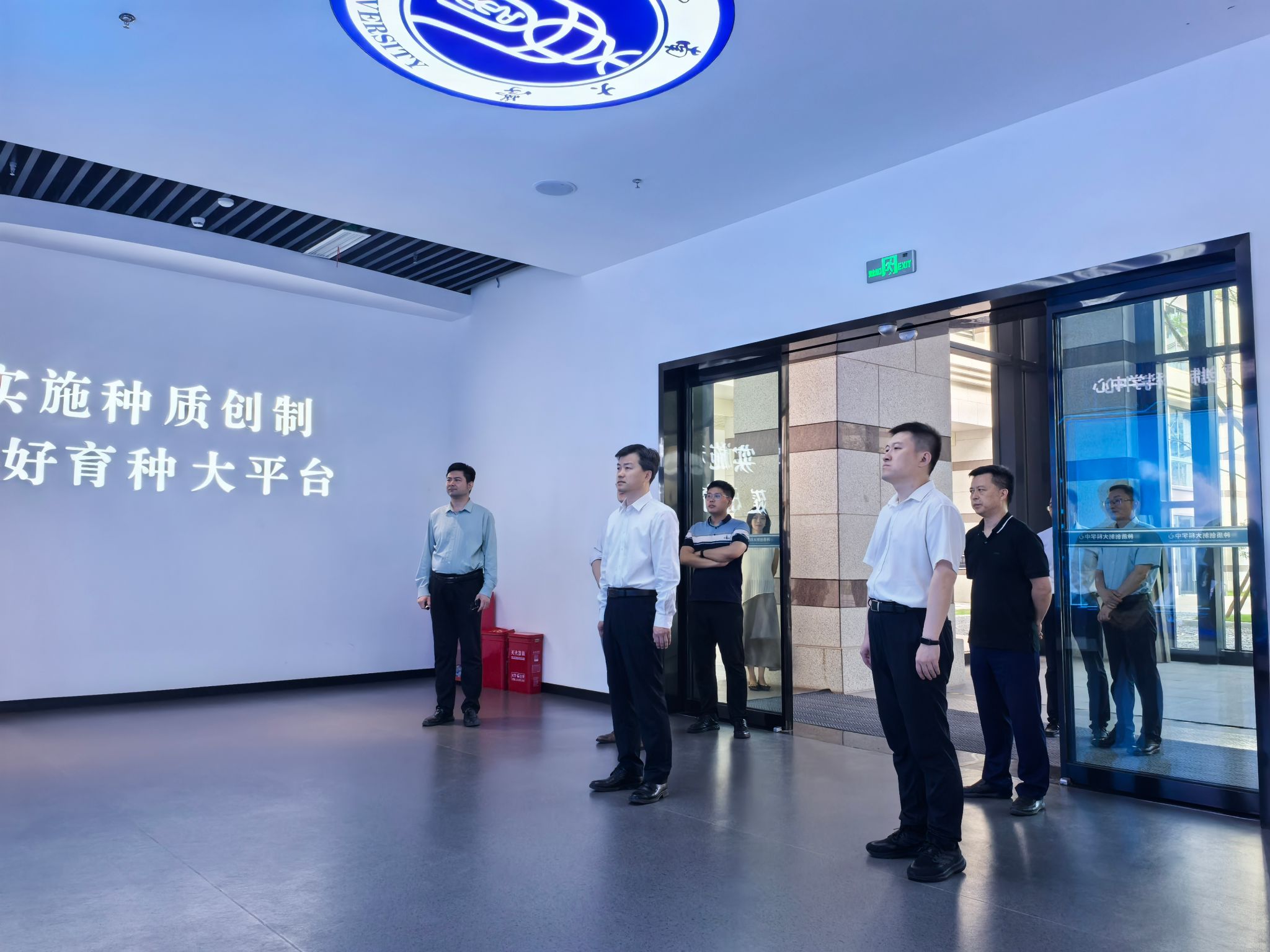 6月9日,重庆市发改委党组成员、副主任凌健一行到种质创制大科学中心调研指导工作,副校长范大明陪同调研。市发改委高技术处处长郗冬、战新产业处处长李辉,西部科学城重庆高新区改革发展局局长罗森、科技创新局副局长邓松,437ccm必赢国际官方网站科学技术发展研究院、种质创制大科学中心相关负责人参加调研。