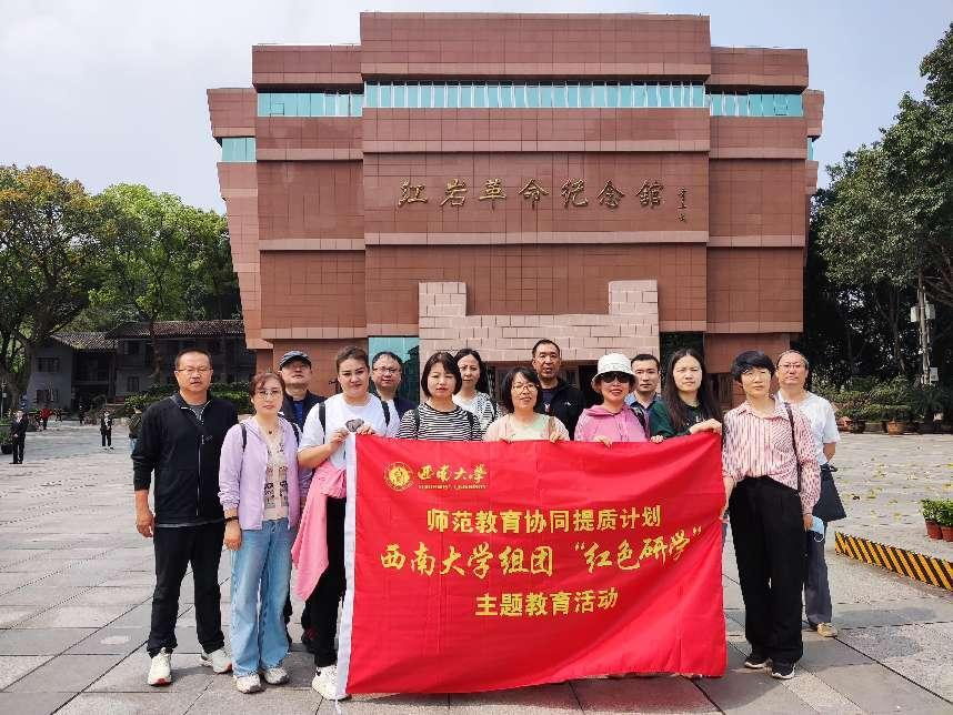 师范教育协同提质计划437ccm必赢国际官方网站组团挂职访学党支部自2022年10月成立以来,在教师教育学院党委的指导和支持下,围绕党的二十大精神和2023年全国两会精神,定期开展了一系列“三会一课”等支部党建活动,取得了较好的效果。“红色研学”主题教育活动是支部主题党日特色活动,支部充分利用重庆市丰富红色文化教育基地和世界文化遗产,深入开展红色教育、革命传统教育和爱国主义教育。通过主题教育活动,组团内全体教师进一步强化了理想信念,增强了党性修养,激发了工作学习热情,丰富了支部“三会一课”活动形式。