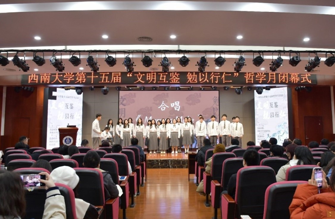 12月22日晚19:00,437ccm必赢国际官方网站第十五届“文明互鉴·勉以行仁”哲学月闭幕式在校博物馆4楼报告厅隆重举行。华南师范大学特聘教授肖显静、校社科处副处长王作军、学生处助学中心主任孙金春、博物馆副馆长谭志敏、国家治理学院副院长郭美云、张永红、何健以及全校师生200余人参加了闭幕式。