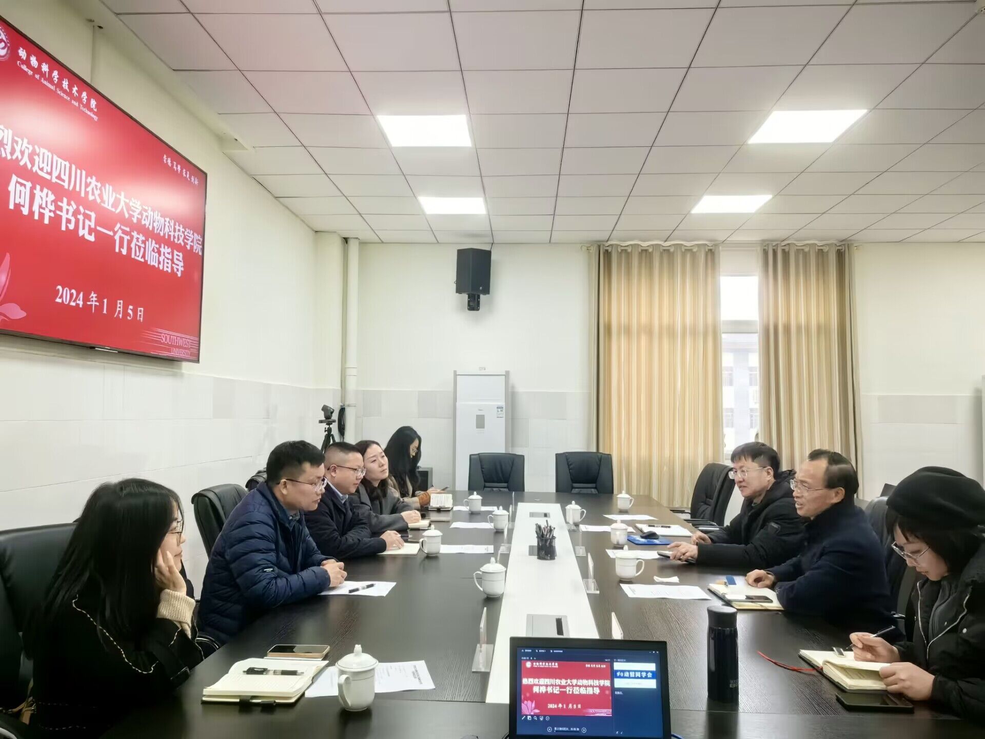 1月5日,动物科学技术学院党委与四川农业大学动物科技学院党委开展“党建引领聚合力 共谋发展谱新篇”专题联学活动。川农动科院党委书记何桦,党委副书记、纪委书记杨雪,学院党委书记赵智华,党委副书记、纪委书记文武,两个单位教工党支部书记、专职组织员、党员代表等参加活动。