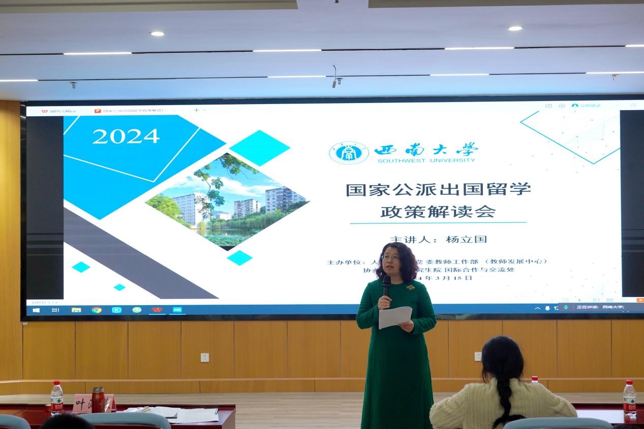 为深入了解国家公派出国留学政策,推动学校公派出国留学工作有效开展,3月15日下午,学校邀请国家留学基金委出国留学选培部副主任杨立国为师生做国家公派出国留学政策解读。本次解读会采取视频会议的方式,来自38个学院、机关的200余名师生参与了本次解读会。教师发展中心主任叶海燕主持活动。