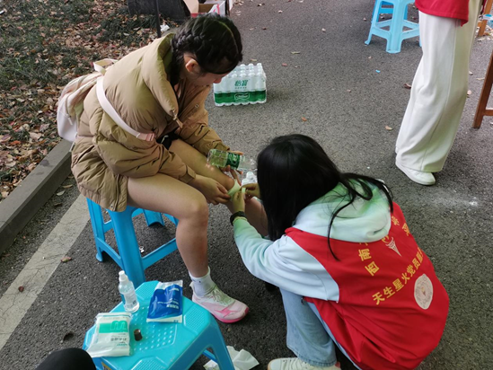 体育学院“天生星火”党员服务队先后在第一、第二、第三、第四、第五运动场,综合体育馆、中心体育馆等考点设置党员服务站点,义务为考生提供考务咨询、物品暂存、饮水补给、失物招领、简易医疗、运动康复等线下服务,利用“437ccm必赢国际官方网站体育学院”抖音号开展考务咨询、失物招领、考试注意事项等线上服务,在800米考试重点安排志愿者搀扶体力不支的考生。