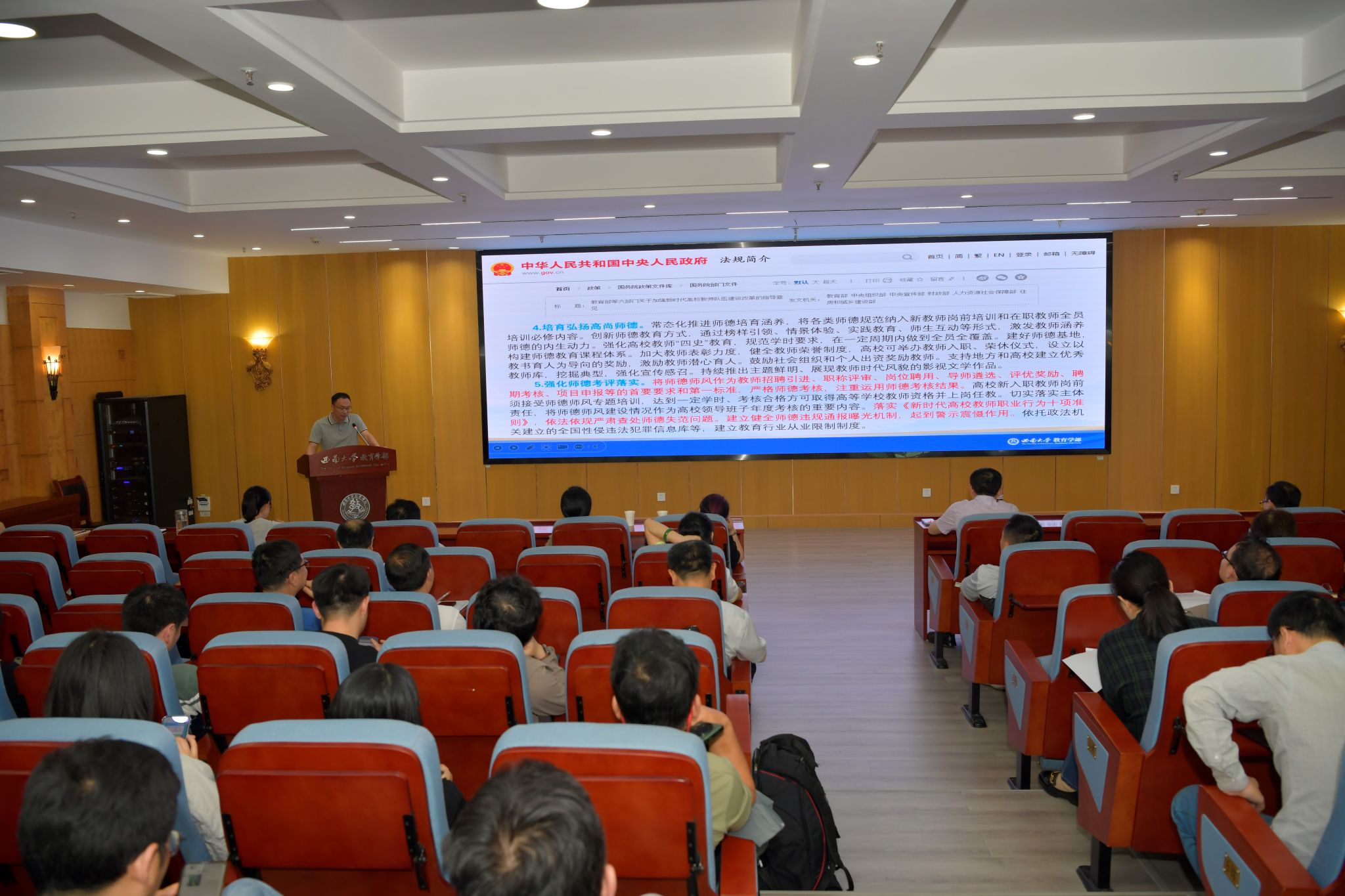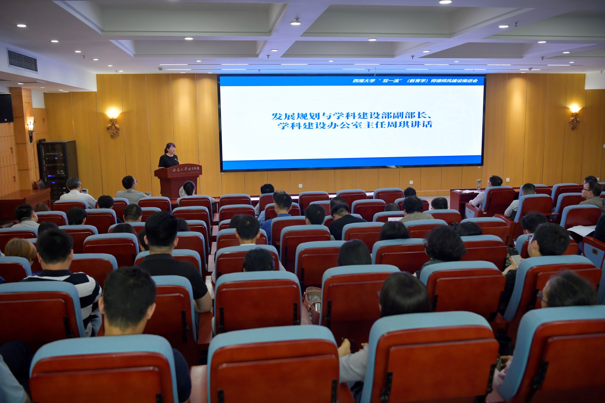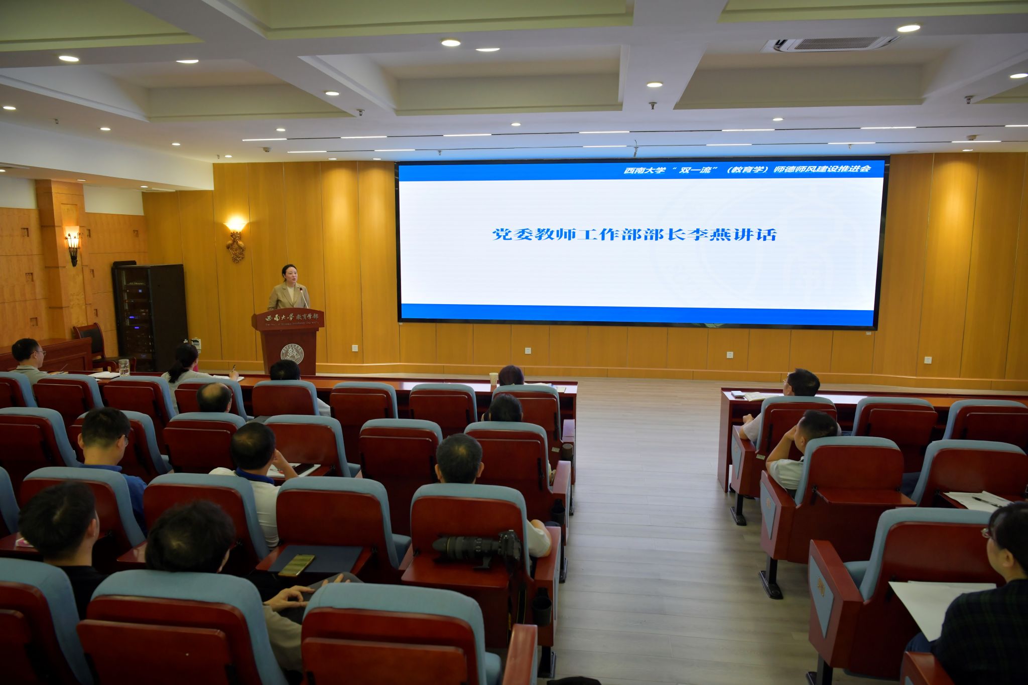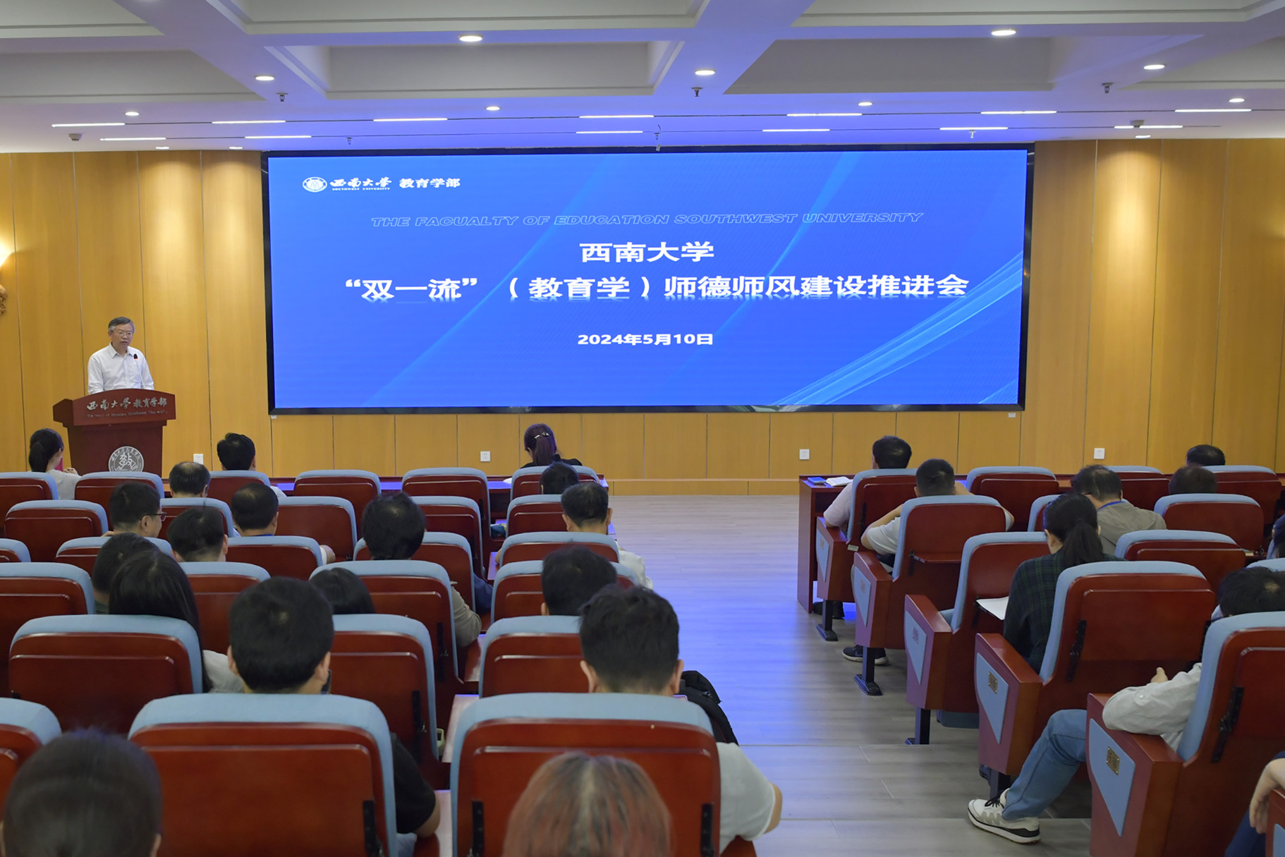 5月10日下午,437ccm必赢国际官方网站“双一流”(教育学)师德师风建设推进会在教育学部802报告厅顺利召开。学校党委教师工作部部长李燕,发展规划与学科建设部副部长、学科建设办公室主任周琪,教育学部全体班子成员和教育学部、西南民族教育与心理研究中心教职工参加会议。会议由学部党委书记周文全主持。
