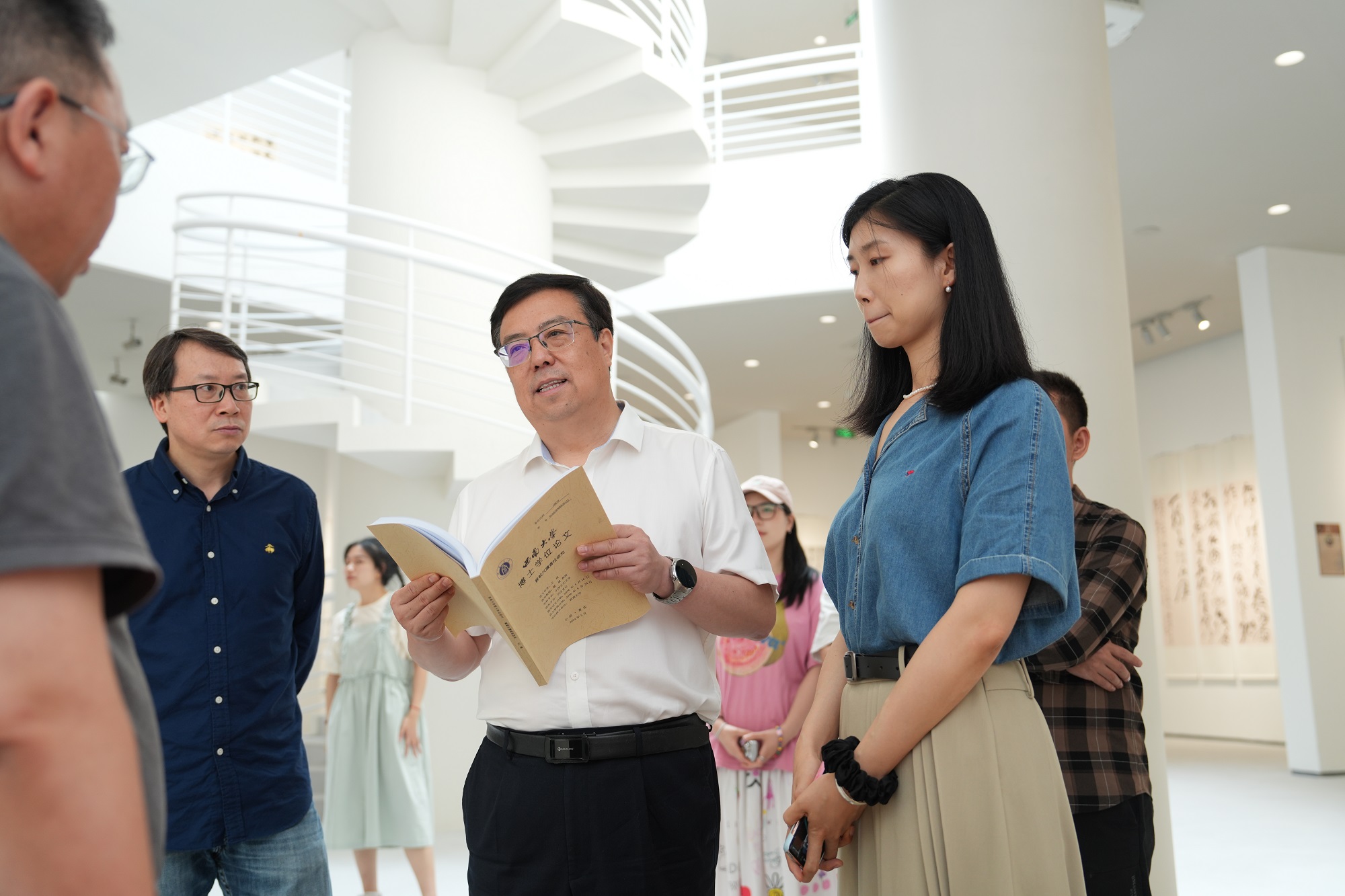 在437ccm必赢国际官方网站中国书法研究所2024届毕业生作品展现场,王进军校长对艺术学科研究生培养工作进行了深入了解,与毕业生及指导教师曹建教授就学位论文质量、作品创作方向等进行了交流。王进军校长强调,要进一步强化研究生教育的过程管理与质量监督,深入发掘艺术学科研究生培养特色,紧扣学科发展前沿,不断培养造就更多德才兼备的高层次艺术人才。