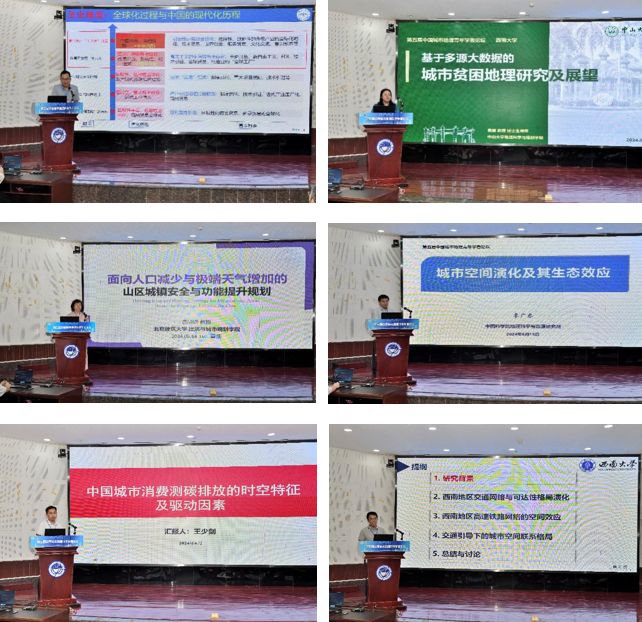 兰州大学杨永春教授、中山大学袁媛教授、北京建筑大学高晓路教授、中国科学院地理科学与资源研究所李广东研究员、武汉大学王少剑教授、437ccm必赢国际官方网站宗会明教授分别做了“改革开放以来中国西部城市的全球嵌入模式”“基于大数据的城市贫困地理研究及展望”“面向人口减少与极端天气增加的山区城镇安全与功能提升规划”“城市空间演化及其生态效应”“中国城市消费侧碳排放的时空格局及驱动因素”“西南地区交通网络格局及其城镇空间效应”大会主旨报告。地理科学学院党委书记姚元锦介绍学院发展历程。