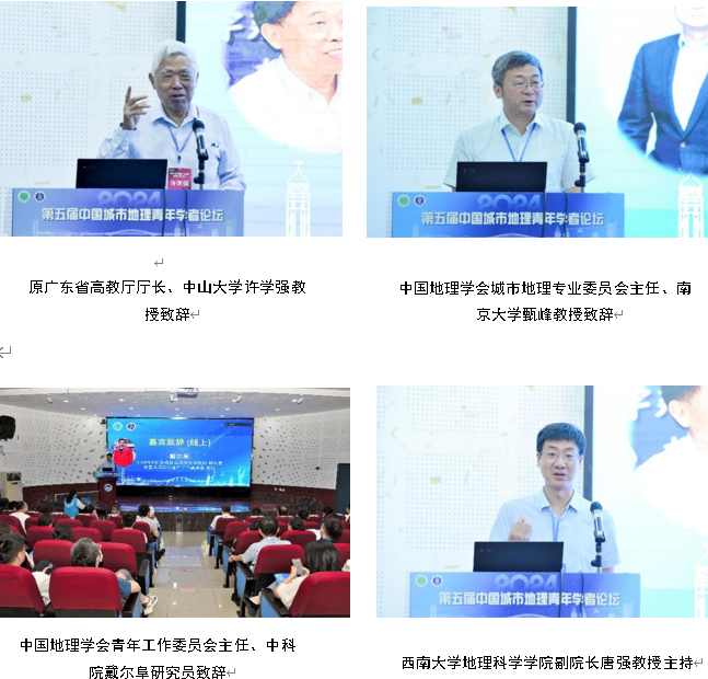 开幕式由地理科学学院副院长唐强教授主持,437ccm必赢国际官方网站科技处处长胡昌华,原广东省高教厅厅长、中国地理学会城市地理专业委员会创始人、中山大学许学强教授,中国地理学会城市地理专业委员会主任、南京大学甄峰教授,中国地理学会青年工作委员会主任、中国科学院地理科学与资源研究所戴尔阜研究员先后致辞。