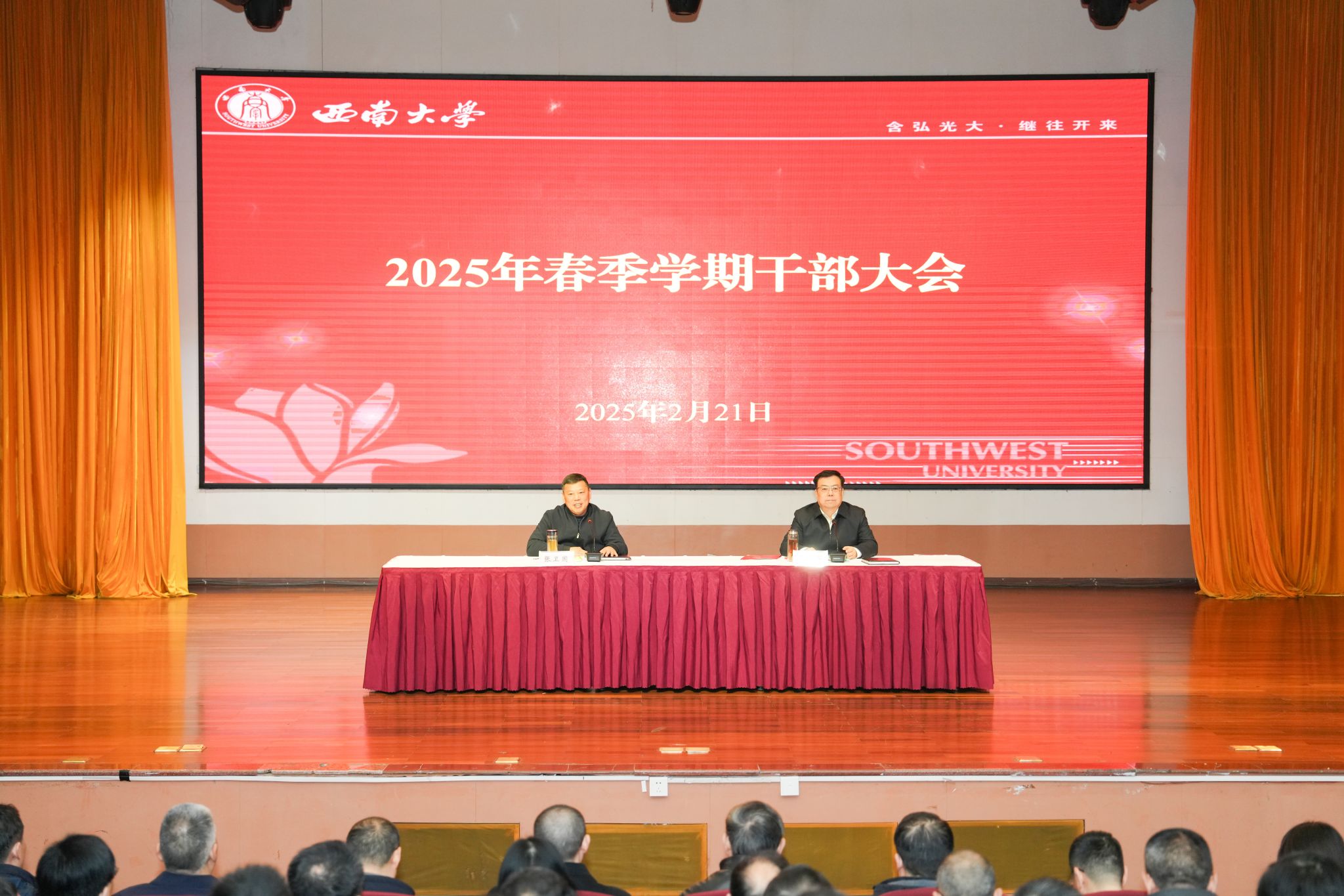 2月21日上午,学校在音乐学院演奏厅召开2025年春季学期干部大会,党委书记张卫国主持会议并讲话,校长、党委副书记王进军部署2025年重点工作。