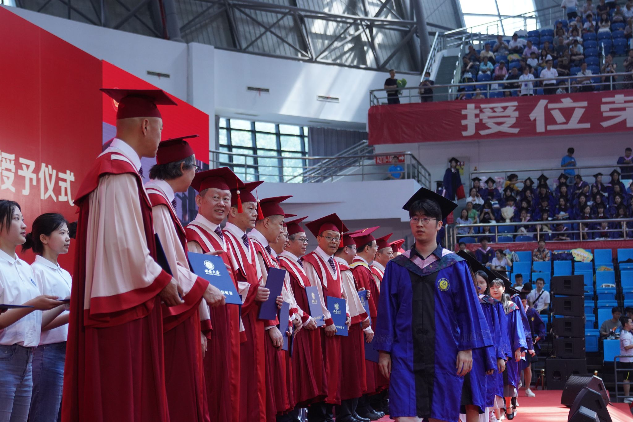 6月27日上午,学校2025年研究生毕业典礼暨学位授予仪式在中心体育馆举行。全体在校校领导、党委常委及各培养单位负责人、导师代表、全体毕业研究生齐聚现场,共同见证这一承载光荣与梦想的重要时刻。典礼由党委副书记黄杰主持。
